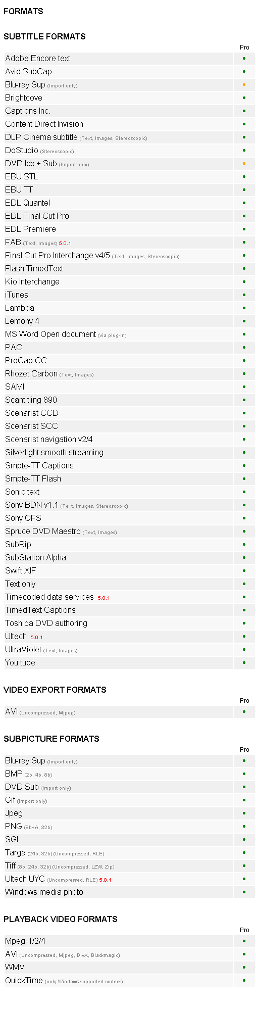 Поддерживается импорт и экспорт субтитров в форматы, совместимые с программами DVD- и Blu-Ray-авторинга