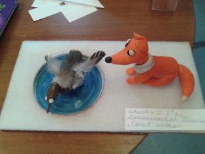 Вчера с дочкой отнесли подделку в городскую библиотеку на конкурс. Оказалось, что конкурс литературный, а не творческий. Но работу все-равно взяли. По мотивом “Серой Шейки”. Лису я лепил, конечно же с помощью дочки (колбаски хорошо катает). Ирине, отдельное спасибо за консультацию.