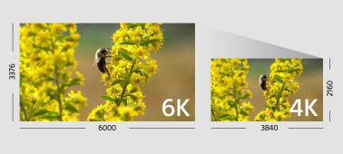 Передискретизация (приблизительно 2,411 x [эквивалент 6K] со сжатием до 4K) обеспечивает высокое качество и реалистичность видеороликов 4K.